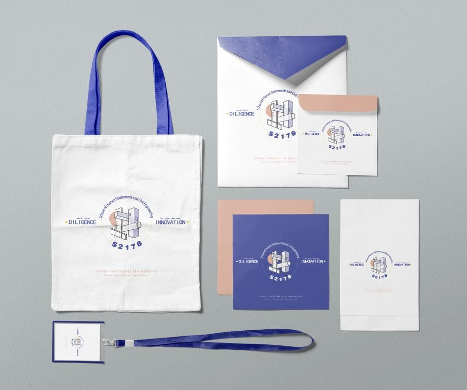 本次文创的对象选择了手提袋、信封与信纸、记事便签本、工牌背板等与同学们学习生活息息相关的产品。以班徽主体图案为中心,左右各有“DELIGENCE”与“INNOVATION”图样,希望班级同学能够在科研事业上勤勉、创新,再创新高。