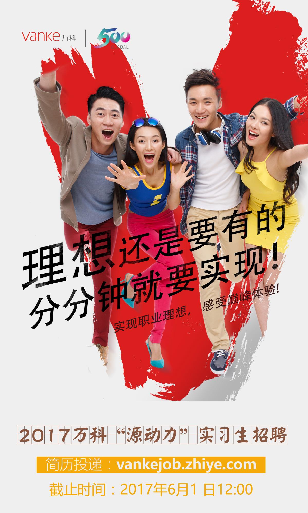 2017“源动力”实习生计划是万科的校园招聘的人才储备项目,将于2017年5月中旬启动。本次实习计划将通过一系列学习和实践活动帮助同学们建立对房地产行业的基本认识,近距离感受中国知名企业的工作文化。实习表现优异者将进入万科的校园招聘人才储备名单,获得万科“新动力”校园招聘的PASS卡。