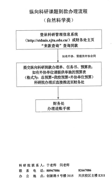 【综合处】纵向科研课题到款办理流程(自然科学类)