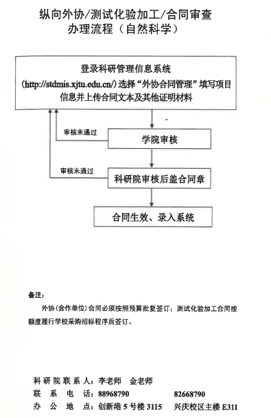 【综合处】纵向外协/测试化验加工/合同审查办理流程(自然科学)