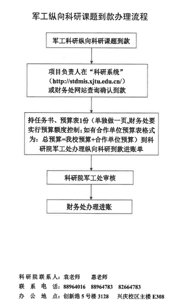 【军工处】军工纵向科研课题到款办理流程