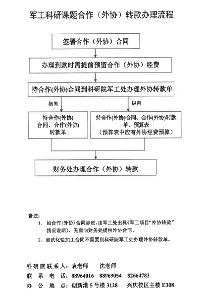 【军工处】军工科研课题合作(外协)转款办理流程
