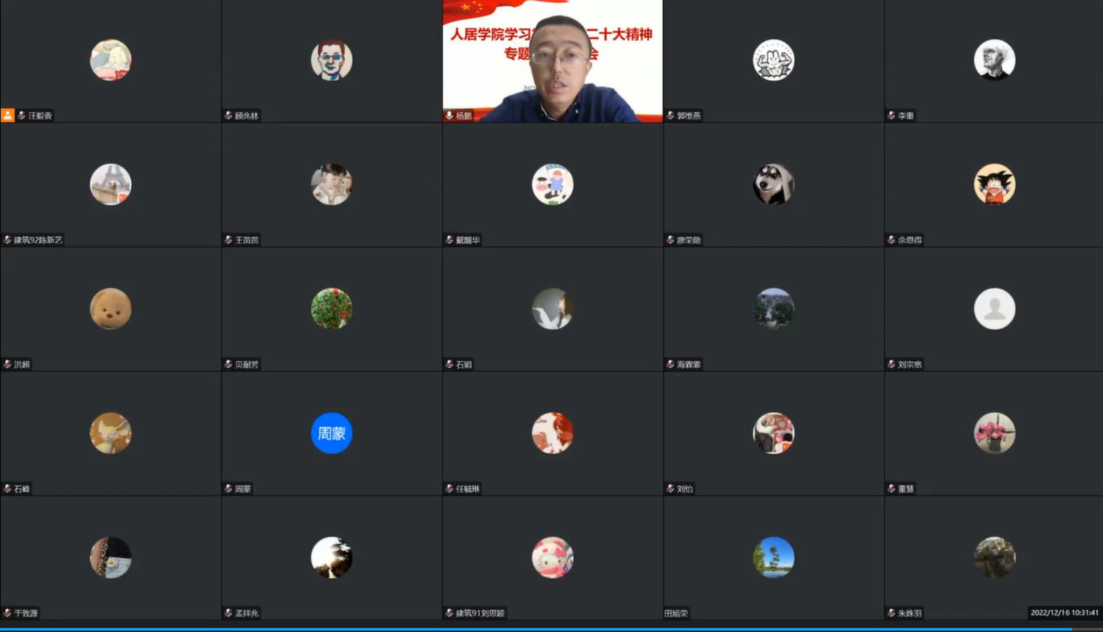 为深入学习宣传贯彻党的二十大精神,12月16日,人居学院邀请校党委宣传部副部长、马克思主义学院教授李重作线上专题辅导报告。人居学院全体党政领导干部、系所负责人、师生党员参会。会议由人居学院党委书记杨鹏主持。