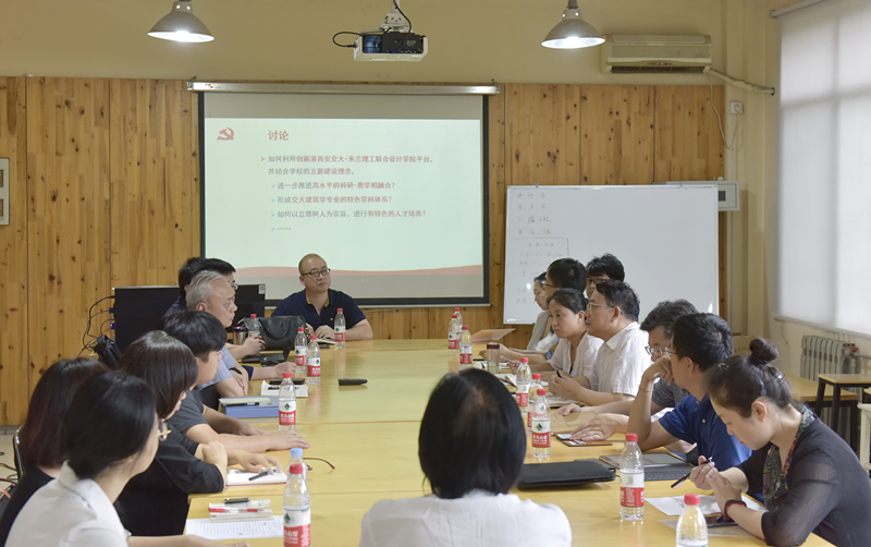 学院党委书记杨鹏、常务副院长顾兆林分别从学院长远发展和管理视角,给与了发展建议。强调以人才培养推动与一流大学学科合作是发展策略,提升和挖掘建筑学特色,加强和培养教师队伍是建筑学的核心竞争力。要以党支部党员为先锋,促进系所教师主动参与合作项目,吸引人才积极交流与流通。西安交大地处西部,古迹遗址?;ぱЭ圃谏挛髡庖蝗宋牡乩砘肪诚抡加幸欢ㄗ试从攀?,建筑学系应当以此为学科快速发展的抓手,并做实做稳。