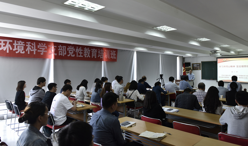 开班仪式上,人居学院党委书记杨鹏强调党员讲党课不仅在加强党员思想、增强党性、提高党员素质方面发挥了先锋模范作用,也是支部党员统一思想、凝聚人心、形成合力的一条有效途径。希望通过开展“双带头人支部”一系列活动,深入推进党支部“两学一做”工作向纵深发展。发挥先锋带头示范作用,辐射带动兄弟党支部建设,在校内校外形成党建品牌。顾兆林教授作为学院常务副院长和学院党委副书记也作为环境科学党支部一名普通党员,强调每一名党员讲授党课的过程,进一步强化了党员身份认同,促进党员对党的理论和知识进行深入细致学习。希望通过这个学习和分享过程,进一步加强党员“四个意识”“增强四个自信”,统一思想,凝聚力量,发挥党支部战斗堡垒作用,树立党员旗帜,精勤科研,立德树人,努力创造一流业绩。吴一平老师介绍了此次党性教育培训班的主要内容,包括理论课程、基地学习、参观实践、革命剧目、专家讲座、交流讨论等内容。
