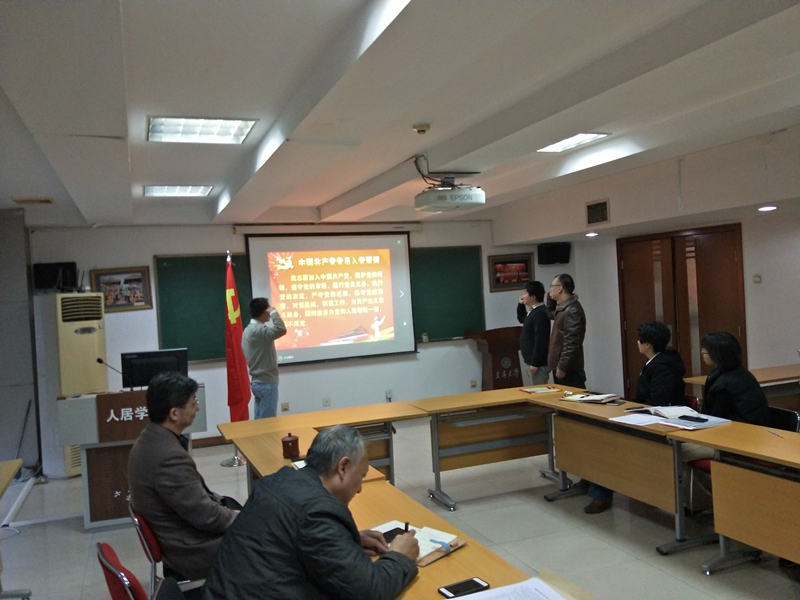 会议还就支部党员发展情况进行了深入讨论,本着对党组织和发展对象负责的态度,支部对发展对象和预备党员同志在思想、工作、生活上的情况纷纷发表了中肯的意见与建议。经过无记名投票,会议表决通过了接受预备党员和预备党员转正的决定。吴一平书记带领两位同志在党旗下进行了庄严的入党宣誓,全体党员高唱《国际歌》,并祝愿两位同志在未来工作与生活中取得更大的进步。