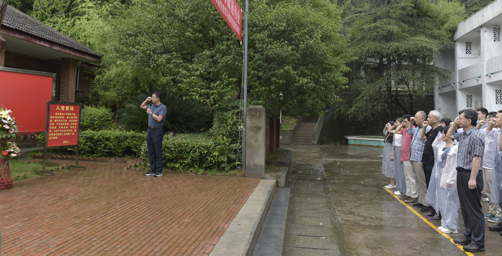 在现场教学环节,全体成员瞻仰了“两弹一星”元勋邓稼先的旧居,并向邓稼先铜像敬献花篮,表达对爱国科学家的深切缅怀和崇高敬意。在学院党委书记杨鹏带领下,全体党员重温入党誓词。