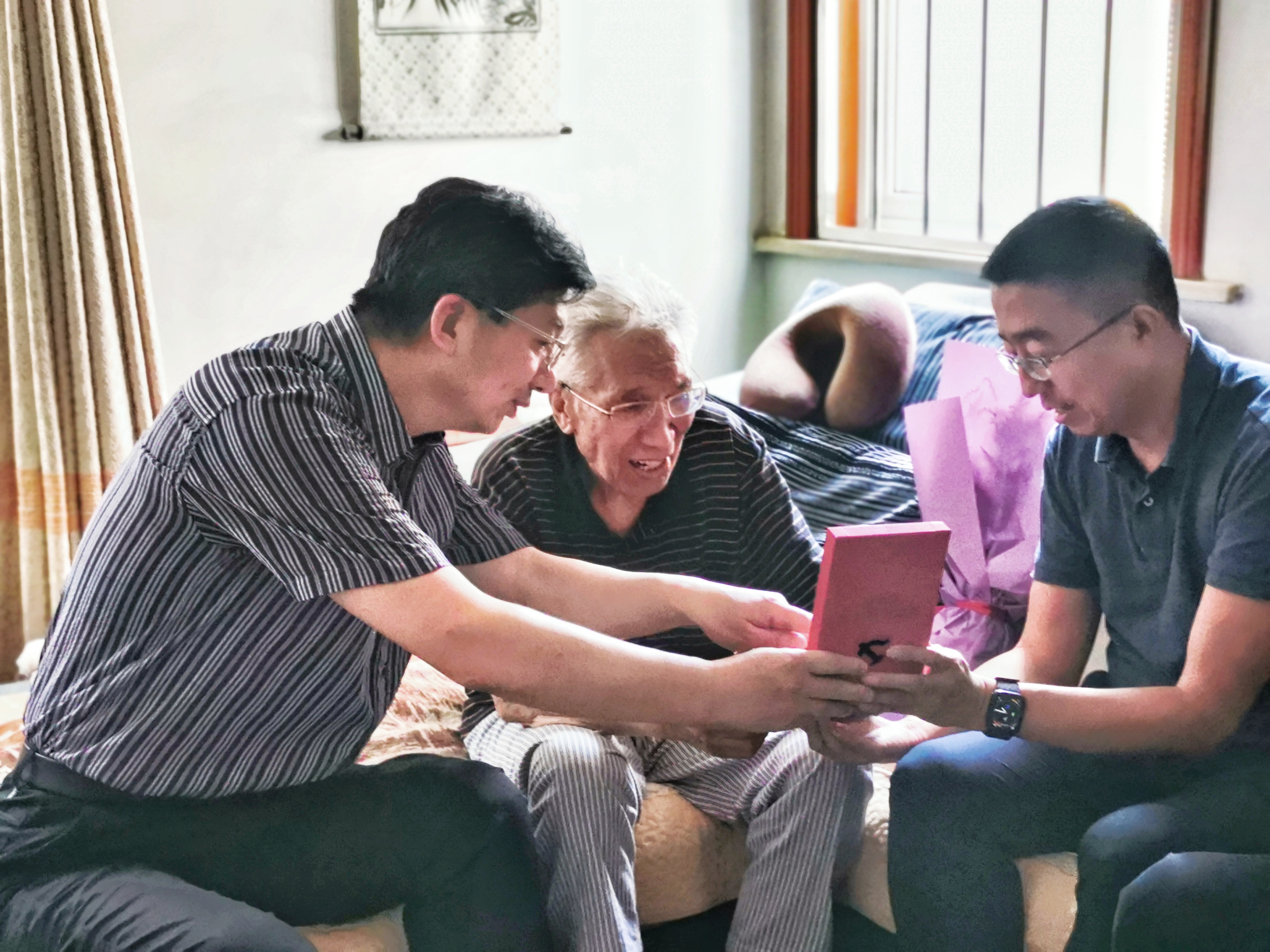在中国共产党百年华诞,七一建党节来临之际,人居学院党政领导携教师、学生党员及学生骨干共同走访慰问老党员及退休老教授。向老党员们颁发“光荣在党50年”纪念章,送去党和学院的温暖与关怀,致以最崇高的敬意,聆听老党员们入党初心与奋斗经历。