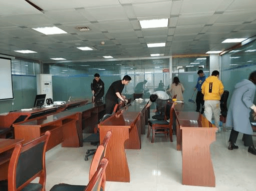 活动中,各位党员同志积极热情,分别拿起自己的清洁工具,身体力行,彰显不怕苦、不怕累的精神,针对公用教室布满尘土、放置混乱的座椅,垃圾散落的地面,写满墨迹的黑板等脏、乱、差的学习环境进行了全面的清洁。大家相互配合,或扫地、或擦抹、或拖地,争取不放过任何一个角落,经过半个多小时的努力,扫帚、抹布、拖把等清洁工具在同学的使用下发挥出了神奇的作用,整个教室焕然一新,大家看着干净整洁的教室,露出了满意自豪的笑容。