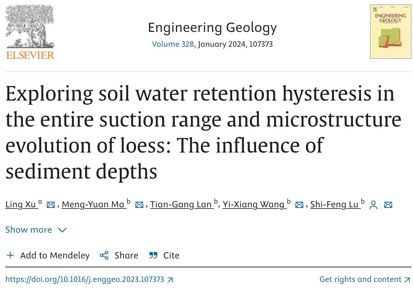 Exploring soil water retention hysteresis in the entire suction range and microstructure evolution of loess: The influence of sediment depths, Engineering Geology, Volume 328, 2024, 107373, ISSN 0013-7952, https://doi.org/10.1016/j.enggeo.2023.107373.