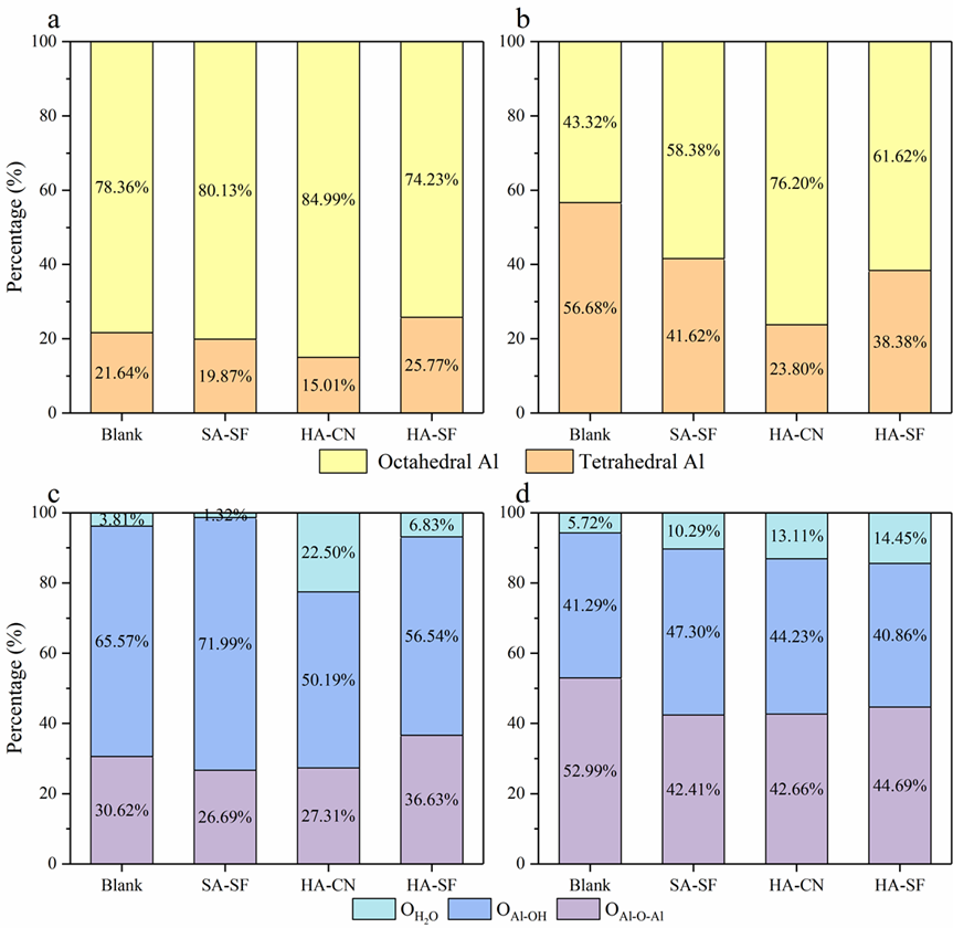 AlCl3(c)和PACl(d)混凝形成不同絮体中的氧组分比例
