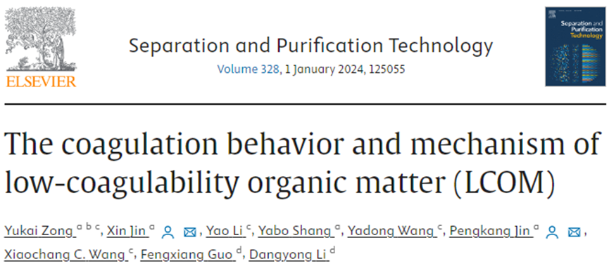 近日,污水处理与资源化创新团队在有机物的混凝研究方面取得新进展,相关研究成果以The coagulation behavior and mechanism of low-coagulability organic matter (LCOM)为题发表于工程技术领域著名期刊Separation and Purification Technology (IF=8.6)。金鹏康教授和金鑫副教授为论文通讯作者,宗宇凯博士为论文第一作者,研究得到了国家自然科学基金和陕西省重点研发计划的资助。