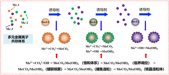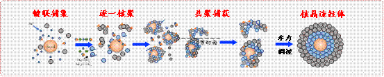 核晶造粒技术是基于碳污协同控制与资源化创新团队长期以来在造粒混凝方面积累的经验,提出在废水中加入具有高选择性、高捕捉性的专用晶种,通过选择性诱导高价离子成核,并被专用晶种高效捕捉,最终附着于晶种表面。同时按照图1所示的模式,在高强度的容积挤压力作用下使得高浓度微粒间液膜中的水分迅速排除,形成局部负压而产生收缩脱水作用,从而使得高价离子沉淀能够分步成长并收缩脱水,最终形成密实的高价离子的核晶造粒体,该过程即所谓的核晶造粒(Nucleation Crystallization Pelleting)。针对废水中的氟离子,核晶造粒技术能够利用专用晶种诱导钙离子与氟离子形成密实的核晶造粒体,实现人造萤石(CaF2)资源高效回收;针对氟离子与悬浮物和有机物共存体系,可以辅以必要的有机物氧化改性,并以CaF2核晶造粒体为核心,吸附聚集、键联捕获悬浮物和有机质,最终在高强度的容积挤压力作用下形成致密化聚集体,实现氟离子、有机物和悬浮物的同步去除。