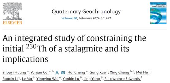近日,西安交通大学同位素实验室黄守毅博士生、蔡演军教授、程海教授等在石笋年代学方面取得新进展,相关研究以“An integrated study of constraining the initial 230Th of a stalagmite and its implications”为题发表在Quaternary Geochronology。