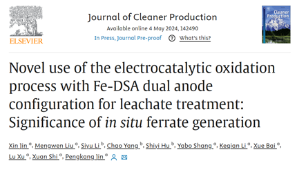 近日,碳污协同控制与资源化创新团队在渗滤液处理方面取得新进展,相关成果以《Novel use of the electrocatalytic oxidation process with Fe-DSA dual anode configuration for leachate treatment: Significance of in situ ferrate generation》为题发表于环境科学与生态学领域著名期刊Journal of Cleaner Production (IF=11.1)。金鹏康教授为论文通讯作者,金鑫教授为论文第一作者,研究得到了国家自然科学基金的资助。