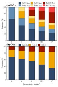 图4 Fe-DSA双阳极配置的ECO工艺中Fe物种和O物种占比
