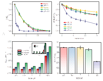 本研究以畜禽养殖废水为研究对象,构建了磷资源化回收及有机质同步去除的核晶造粒工艺(NCP)体系,通过向核晶造粒反应器中投加专用晶种,辅以水力调控,使专用晶种在反应器内充分流化的同时,强化专用晶种与污染物之间的传质效率,从而实现畜牧养殖废水中磷资源的高效回收及有机质的同步去除。经过对药剂投加量、上升流速、床层高度以及专用晶种粒径等参数的系统探究,确定了核晶造粒工艺最佳运行参数(图1);为进一步探究NCP工艺系统的稳定性,本研究在最佳工艺参数下连续运行反应器120小时,通过对出水水质的持续监测,发现在连续运行过程中,前期磷的回收效率始终稳定在97.5%,同时,有机质的去除率稳定在92%(图3),在运行后期,磷与有机质的去除率得到了小幅上升,这归因于专用晶种表面活性位点的改变;上述现象充分体现了NCP工艺系统在磷资源化回收及有机质同步去除过程中的稳定性。此外,在连续运行过程中,专用晶种逐渐长大,形成了致密的共聚络合体(造粒体)。