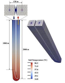 论文报道了某中深层U型管地热系统实际测试数据,并开展了计算模型开发、长期性能分析及系统参数优化。