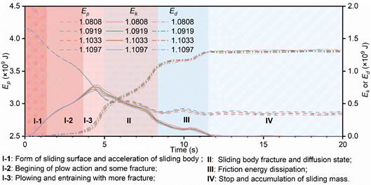 创新点:① 黄土高速远程滑坡运动过程中,滑体物质结构呈现由连续向非连续结构转变、运动状态由固态向类流态转化的特征;② 滑体规模与阶地起伏度对滑坡能量转化及物质运移过程具有相反的影响规律;③ 铲刮作用与地形粗糙度呈负相关,而与滑体体积呈正相关。