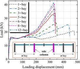 为解决上述问题,西安交通大学侯健教授课题组采用新型卧式加载装置和边柱侧向约束装置开展了钢筋混凝土平面框架的连续倒塌试验和有限元分析。首先在试验研究中分别给边柱设置固定和自由两种侧向约束条件,对比钢筋混凝土平面框架在水平-竖向混合连续倒塌和竖向连续倒塌两种工况下的倒塌抗力、破坏模式和钢筋应变发展规律等。然后根据失效中柱在框架结构中所处的位置,考虑与边柱相邻的框架布置对边柱的侧向约束作用,采用有限元方法分析了相邻框架的跨数布置对钢筋混凝土平面框架倒塌抗力的影响。最后结合试验中的两组极端约束工况和有限元分析中的其他约束工况,拟合了钢筋混凝土平面框架的峰值抗力放大系数随相邻框架跨数的变化规律。结果表明,钢筋混凝土平面框架在自由侧向约束条件下水平-竖向混合连续倒塌的抗力峰值仅为竖向连续倒塌的0.28倍;与竖向连续倒塌相比,钢筋混凝土平面框架在水平-竖向混合连续倒塌工况下的最终破坏位置由中间梁-柱节点转移到了边柱;随双边相邻框架跨数的增加,边柱所受到的侧向约束作用从自由约束逐渐转变为固定约束,钢筋混凝土平面框架的倒塌行为由水平-竖向混合连续倒塌逐渐转变为竖向连续倒塌,其倒塌抗力峰值呈非线性增长,且增长速率逐渐减小;本研究所提出的峰值抗力放大系数的变化规律与试验和有限元分析结果保持一致,可为钢筋混凝土平面框架的防倒塌设计和性能评估提供有效参考。