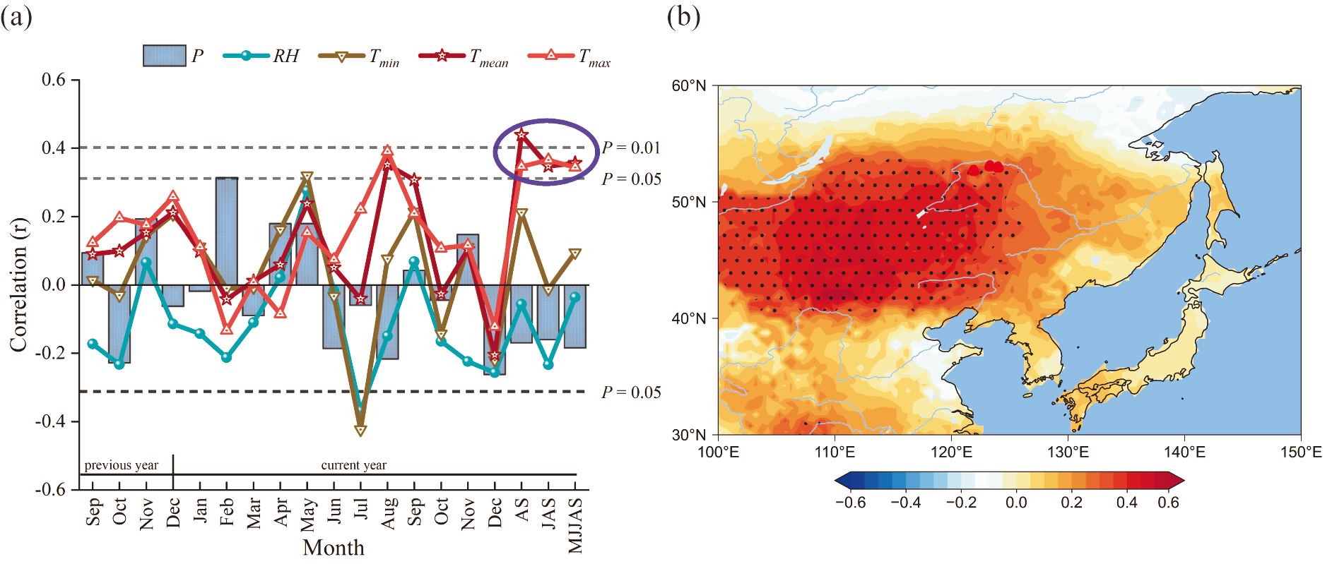 研究通过系统比较δ18Oc与δ18Op所携带的气候信息强度,揭示了本区主要水汽来源及其传输路径。结果表明,δ18Op信号主要受控于温度驱动机制,东亚夏季风与ENSO事件共同主导了区域水汽循环过程(图3)。这一发现不仅为理解中高纬多年冻土区的水汽输送过程提供了关键证据,也为区域气候变化背景下的生态响应研究奠定了基础。