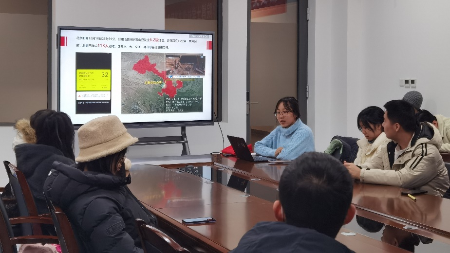 活动伊始,硕2179党支部书记任浩源作《树牢安全意识,提高自护能力》专题辅导报告,细致深入地介绍了地震等自然灾害发生原因、预警信号以及应急措施等基础知识。针对于地震灾害,任浩源从地震波的破坏性到次生灾害的蔓延,带领同学们全面了解地震给人类带来的巨大威胁,警示大家高度重视这一自然灾害,加强对地震的认知和防范措施,以全力保障人身安全。