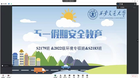 为落实“安全第一、预防为主、教育为先”的工作方针,强化安全意识、保障学生假期安全,2024年4月30日下午,2022级环境专硕及硕2183、硕2179三个班级联合开展了“五一劳动节“ 特别安全教育活动。本次活动由2022级环境专硕班班长王艳莉主持。