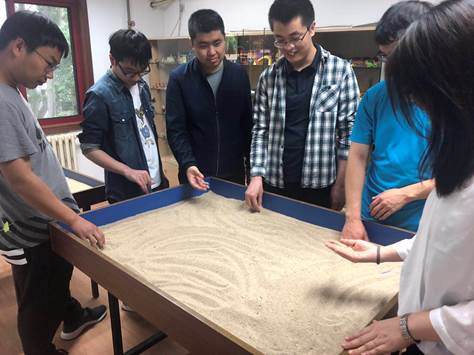 在心理健康老师的帮助下,博1756班同学以充满童心的“心理沙盘游戏”的方式合作完成一幅沙盘作品,而后共同交流沙盘作品创作过程中内心想法的变化与波动。通过这种潜意识的沙盘创作和相互交流,参与同学增进了对自身心理世界的探索,增强对他人和外界的感知与理解,从而综合提升自己的心理健康水平。