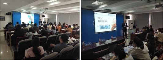 紧接着,地建集团党委委员、工会主席李瑞致辞,对西安交大为此次校园宣讲活动的大力支持表示感谢,还对为本次活动顺利举办做出大力支持的人居学院领导和就业指导老师们表示感谢。