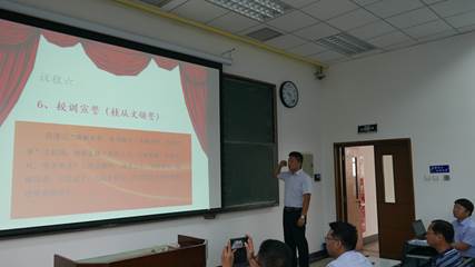 随后教务员郭愔老师、学工组汪毅香老师、杜文静老师对研究生教学管理工作、学生工作、学院学生文化活动、学院日常行政管理、安全知识和心理健康知识进行介绍和讲解普及。