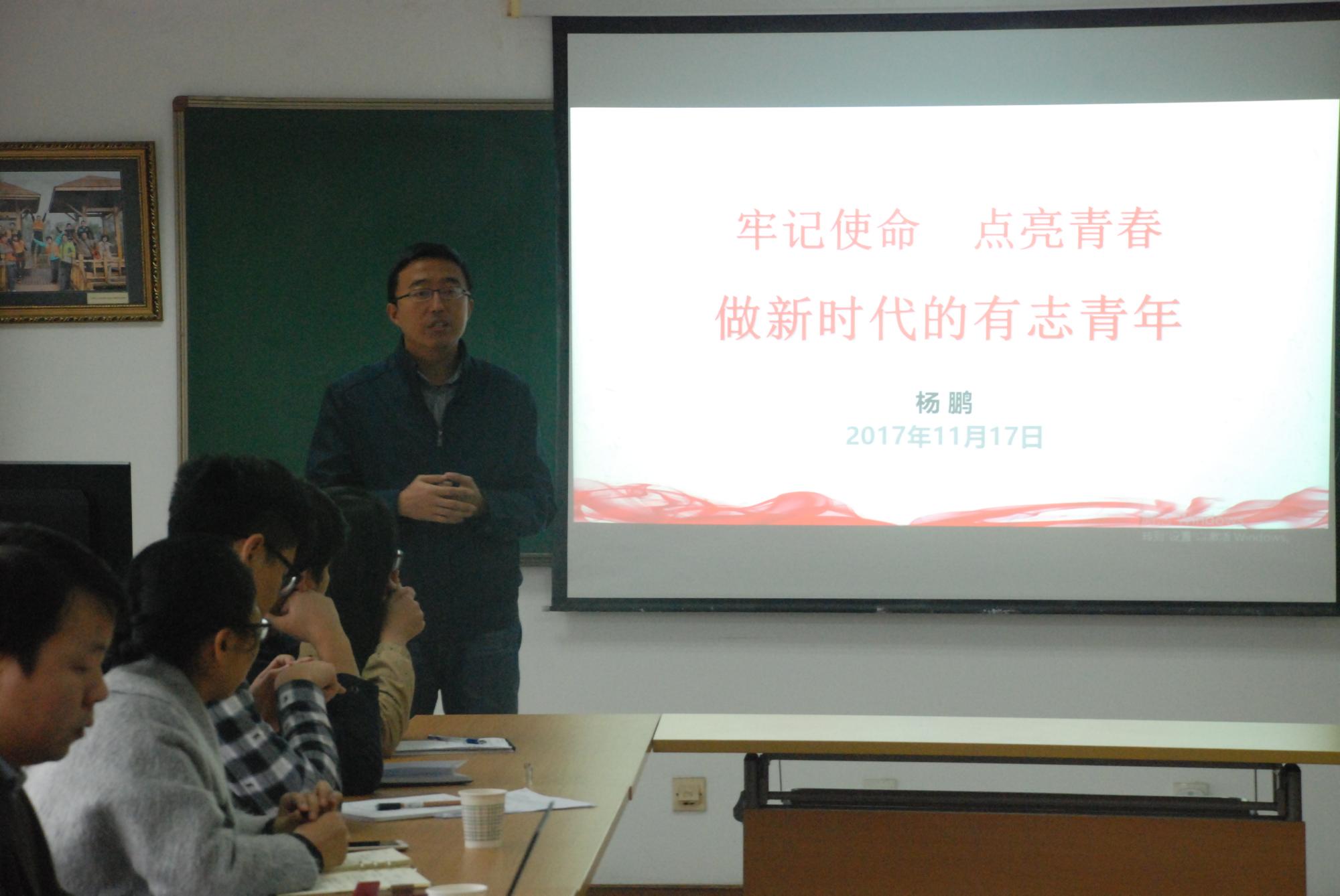 学院党委书记杨鹏做“牢记使命,点亮青春,做时代的有志青年”专题党课。杨鹏书记讲到,习近平总书记在十九大报告中指出,“青年兴则国兴,青年强则国强”,青年勇于担当,未来才有前途。青年人首先了解国家在做什么,才能明白自己要做什么。并从“共产党人的初心与使命”“中国特色社会主义进入新时代”“我国社会主要矛盾变化”“新时代中国特色社会主义思想”“新时代坚持和发展中国特色社会主义的基本方略”“两个一百年奋斗目标的历史交汇期”六个方面,梳理解读了十九大报告提出的新思想、新论断、新提法、新举措。同时对报告中提出的发展目标和要求,结合人居学院学科特点和研究生实际情况,进行了具体阐释,提出了具体要求。杨鹏书记讲到,十九大报告中专门成段成节论述了生态文明建设的国家战略。“生态文明,美丽中国”与人居学科紧密相关,也为人居学院研究生发展指明了方向,人居学子要把握这一历史机遇,牢记国家使命,主动承担责任,积极迎接挑战;研究生干部要深刻认识“全面从严治党,坚持党对一切工作的领导”,积极学习党章党规和党的理论,提高政治站位。在思想上,保持与党中央、党委的高度一致。在科研工作上,把握国家“面向世界科技前沿、面向经济主战场、面向国家重大需求”目标导向;深刻理解“中华民族共同体意识”,认识团结的重要性,理解自我发展与学院发展同处命运共同体,研究生干部要带头创和谐;在日常生活中,不信谣不传谣,规范网络行为,明辨是非,运用专业知识,理性发声;树立健全人观念,建设自尊自信、理性平和、积极向上的健康心态。每一位学生干部都要珍惜干部经历,积极作为,努力上进。在实践中增强政治意识、集体意识、服务意识;培养无私奉献、开拓创新、踏实思辨的精神;提高分析决策、表达书写、交流沟通、组织协调、应急应变和自我管理能力;处理好干部与同学、干部与干部、干部与老师、学习与工作之间的关系。锻造自己成为政治过硬,本领高强的国家高素质人才,为交大之光。