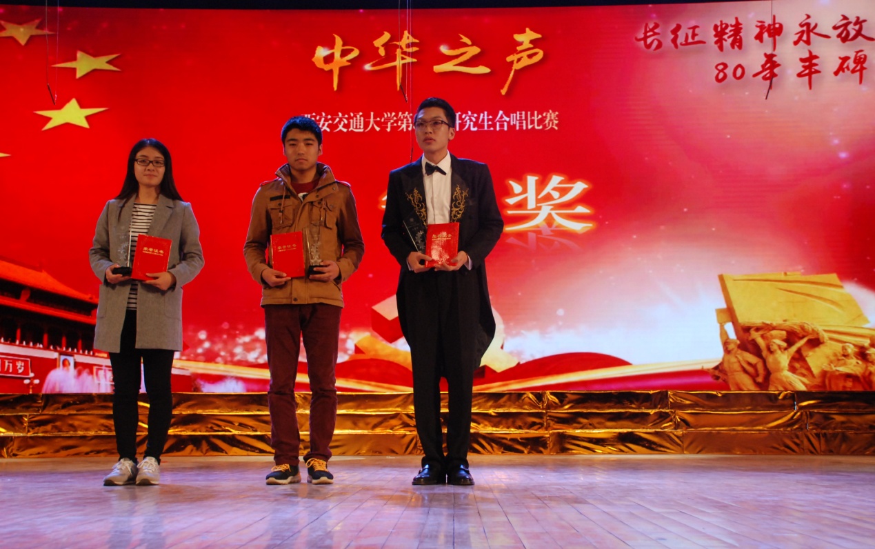1021日晚,西安交通大学第32届研究生“中华之声”合唱比赛在宪梓堂成功举办。这次合唱比赛聚集了包括多个学院、中心及研究生院(苏州、青岛)的14支参赛队伍。今年正值长征胜利80周年,为缅怀革命先辈的丰功伟绩,发掘长征精神的历史内涵和时代价值,以长征精神激扬青春斗志,汇聚青春正能量,同学们用一曲曲高亢嘹亮的歌声唱出了当代研究生的朝气,表达了同学们对于长征精神的崇敬,奉献了一场精彩绝伦的演出。由人居、外语、公管2016级研究生组成的联队,完美演绎了《为世界之光》和《十送红军》两首参赛曲目,出色的完成了这次比赛,获得第五名的好成绩,荣获本次比赛三等奖。