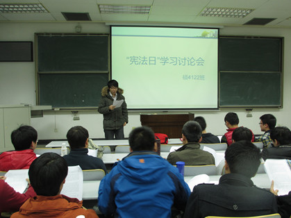 硕4122班于12月4日下午5点在兴庆校区主楼D105,开展了“宪法日”学习讨论会活动。同学们集体学习了宪法内容,党支部书记谈宪法的重要性和意义,在宣传教育过程中,通过提问的形式,调动了大家了解宪法的积极性和学习热情。
