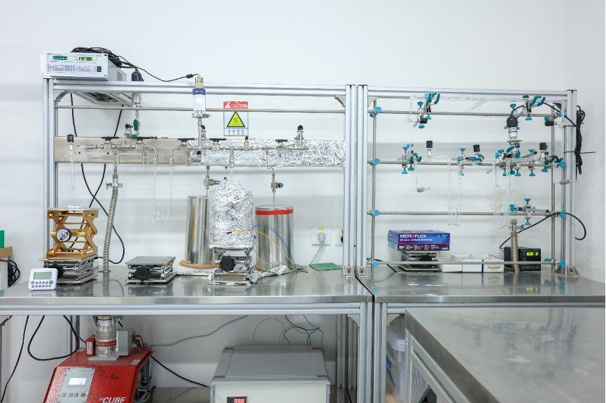 同位素实验室总面积约800m2,其中超净实验室面积约260m2。其中,U系年代学超净实验室配置2台多接收电感耦合等离子体质谱仪(型号分别为Neptune Plus和Neptune XT)。实验室按净化等级分为三个层次:万级超净仪器间(约150m2),千级超净化学间(约110m2)和百级超净安全柜(8个)。超净实验室运行良好,已完成了大量年代学样品的化学处理和仪器测试工作,为相关科研工作提供了可靠的技术支撑。常规实验室拥有MAT-253型、253 plus型和Delta V Plus型气体同位素质谱仪各一台,并配备有2台Kiel-IV型微量碳酸盐装置,可快速获取高精度的C、O同位素数据,同时还可进行三氧同位素(18O-17O-16O)的测定;2台Picarro L2140-i 型水同位素分析仪,可用于测量大气降水、岩溶滴水及大气中气态水的H、O同位素组成,并开展包裹体中H、O同位素的分析测试;2套激光诱导击穿光谱系统(LIBS)用于微量元素的分析测试;1台安捷伦8890型气相色谱仪用于有机化合物成分测定;实验室还配备有蔡司偏光荧光显微镜、金刚石线切割机床和Micromill微量取样装置等设备,确保相关研究工作的顺利开展。