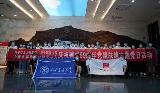 弹指一挥,99年沧桑巨变,从南湖红船到改革开放新中国,中国共产党带领人民奋进新时代,取得了中国特色社会主义建设的伟大成就。值此中国共产党成立99周年之际,西安交通大学人居学院2019级专硕党支部与中建东孚华西公司党总支开展了“同迎党日悟西迁,不忘初心勇向前”联合主题党日活动。4月22日,习近平总书记考察西迁博物馆,对西迁精神作了重要阐述:“‘西迁精神’的核心是爱国主义,精髓是听党指挥跟党走,与党和国家、与...