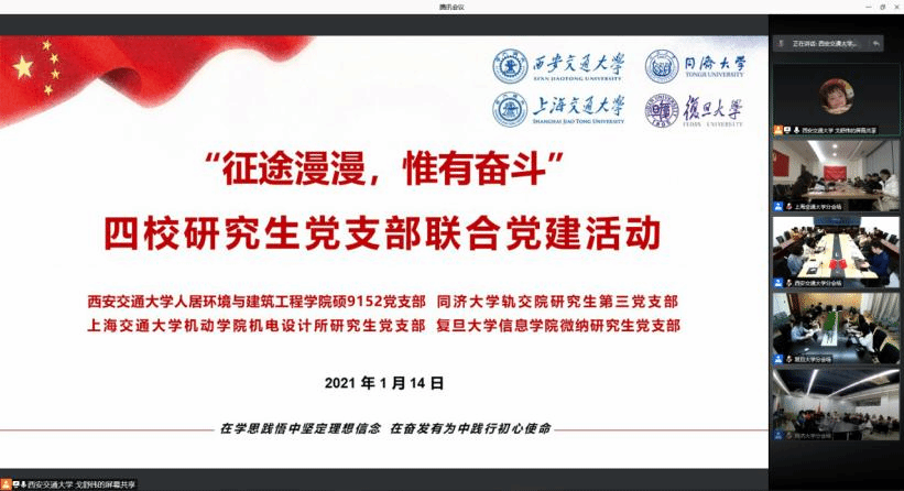 2020年12月31日,国家主席习近平发表新年贺词,回顾2020年极不平凡的历程,展望未来的奋斗图景,温暖人心,催人奋进。为深入学习贯彻习近平总书记新年贺词,扎实开展“四史”教育,多渠道教育引导广大师生自觉把思想和行动统一到学习贯彻习近平新时代中国特色社会主义思想、习近平总书记来校视察重要讲话精神和十九届五中全会精神上来,广泛动员、靠前筹划、重点部署“庆祝建党百年”系列主题宣传教育活动,探索跨校学生党支部...