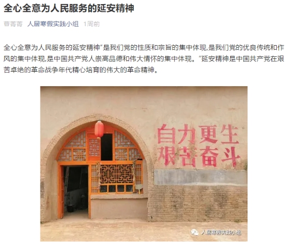 延安精神熏陶着一代又一代的共产党人,延安精神见证着党的发展与进步,滋养着延安这片红色的沃土。为追寻红色足迹,传承红色基因,感悟延安精神的历史价值和时代意义。人居学院的荆玥、赵佩芝、杨舒然、曹菁菁、萨丽娜、程冰组成了“感悟延安精神,共创美好未来”团队,在寒假期间自主收集资料,开展“延安精神”的学习与相关研究,用线上形式宣传延安精神的发展历史和时代价值。延安时期,中国共产党人史诗般地表现出对人类解...