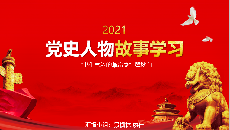2021年是中国共产党成立100周年。值此百年诞辰之际,我们更加怀念为中国共产党的创建、为中国人民的解放事业做出奠基性贡献的伟大革命先驱们。为深入贯彻落实团支部三会两制一课制度,加强支部成员对党史的学习,人居学院2020专硕党团支部策划并开展线上党史系列学习活动——《党史人物志》。支部于2021年5月25日晚、6月2日晚分别进行了第五、六期党史人物的学习,分别讲述了蔡和森、周恩来、瞿秋白及叶剑英四位伟大革命同志的...